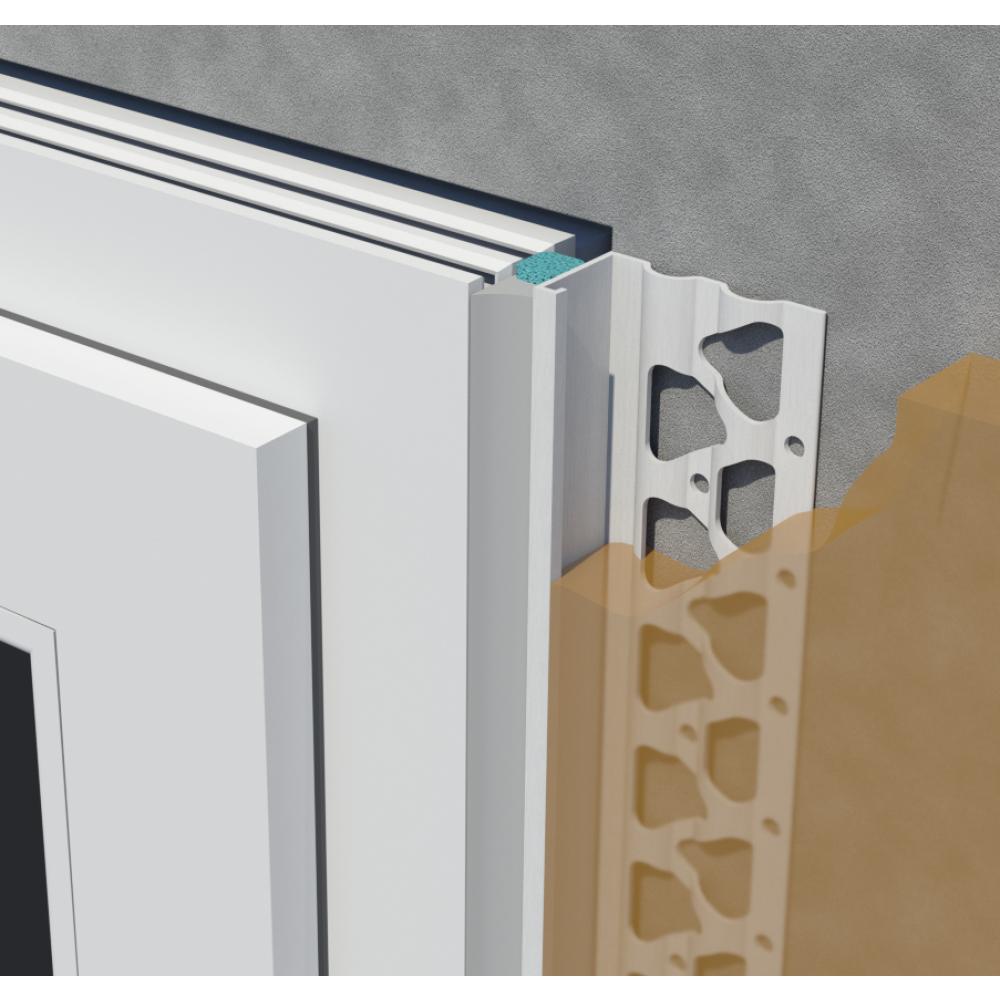 Factory-applied, closed-cell backer rod provides a sealed separation gap 1/4" wide where stucco abuts dissimilar materials such as the perimeter of window and door openings per ASTM C1063.