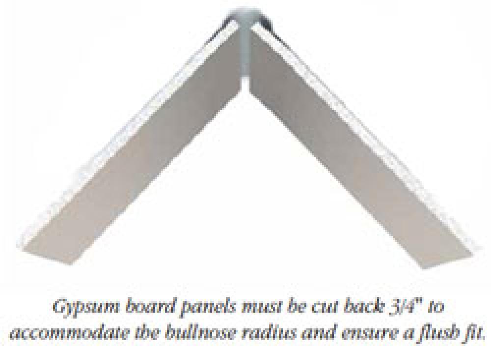 Bullnose to 90° transition caps are available to provide a smooth transition to baseboard or corner molding. They install quickly and easily and can be used with metal, vinyl or paper-faced bullnose corner bead.