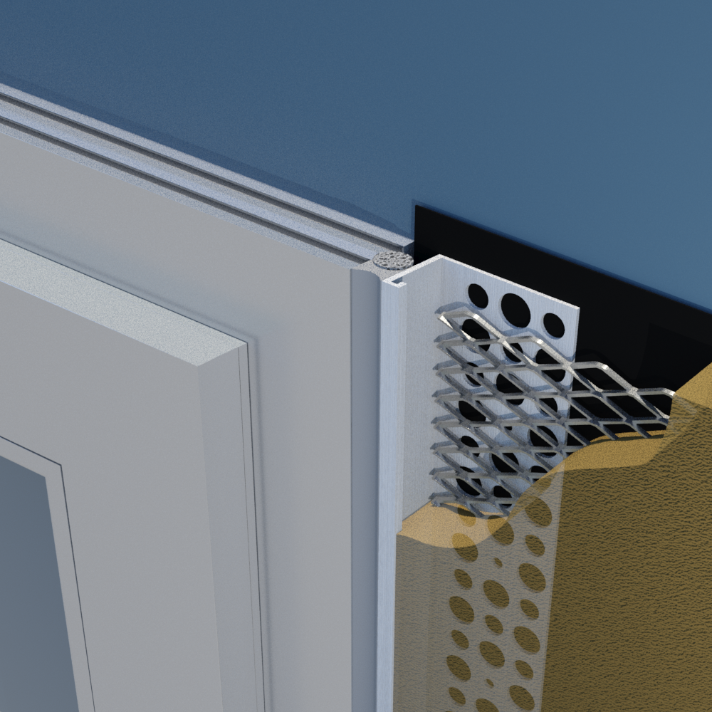 Terminates stucco and plaster against windows, doors and other dissimilar materials.