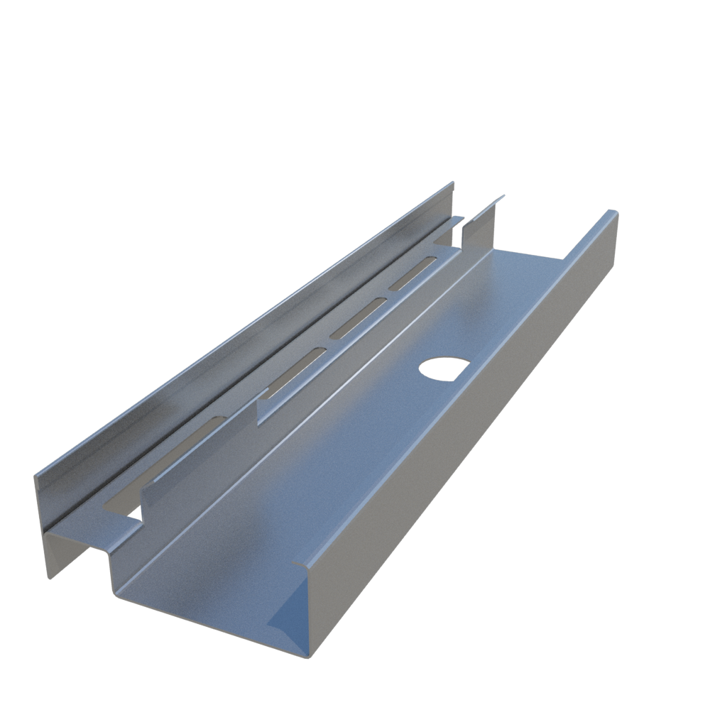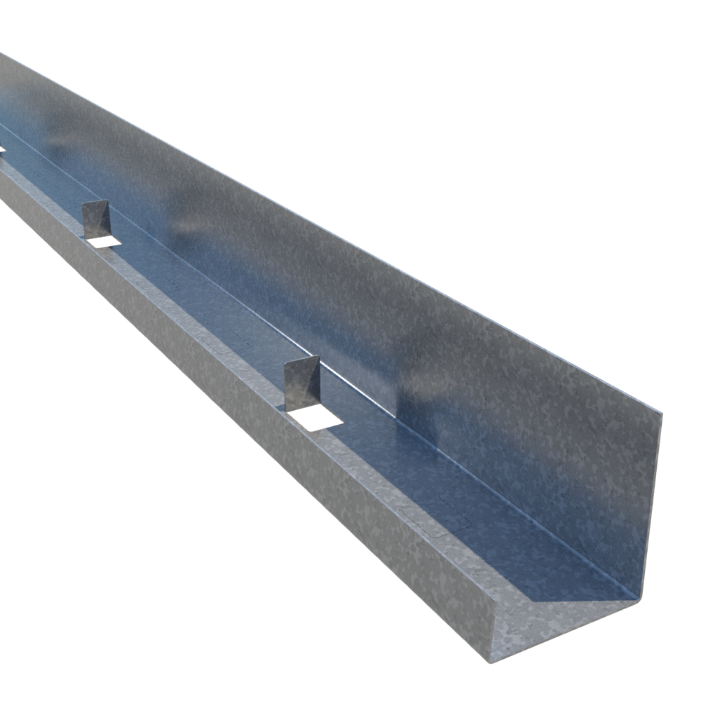 ClarkDietrich J-Track is used at the floor and ceiling in shaftwall assemblies. C-T studs and gypsum shaftliner panels are friction fit between the top and bottom J-Tracks. J-Tracks have unequal legs. The longer leg (available in 2-1/4" and 3") is installed against the shaft. The leg provides a backstop for easy installation of the liner panel. Three-inch leg track is typically used as a jamb strut around closure details, including duct and door openings, abutments and intersections.