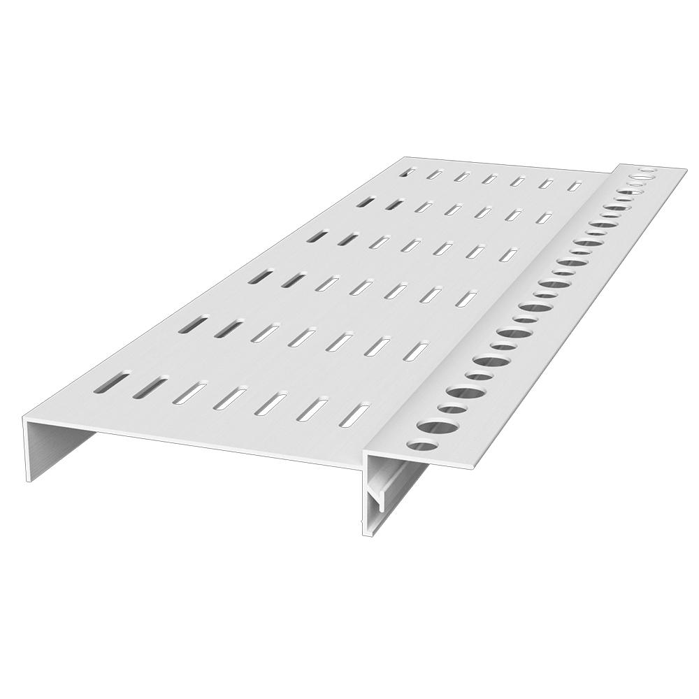 AFCS Series of one-piece soffit vent with a reinforcing rib to key into stucco. 3/4" elongated vent holes. Vent clips are provided to connect soffit vents.