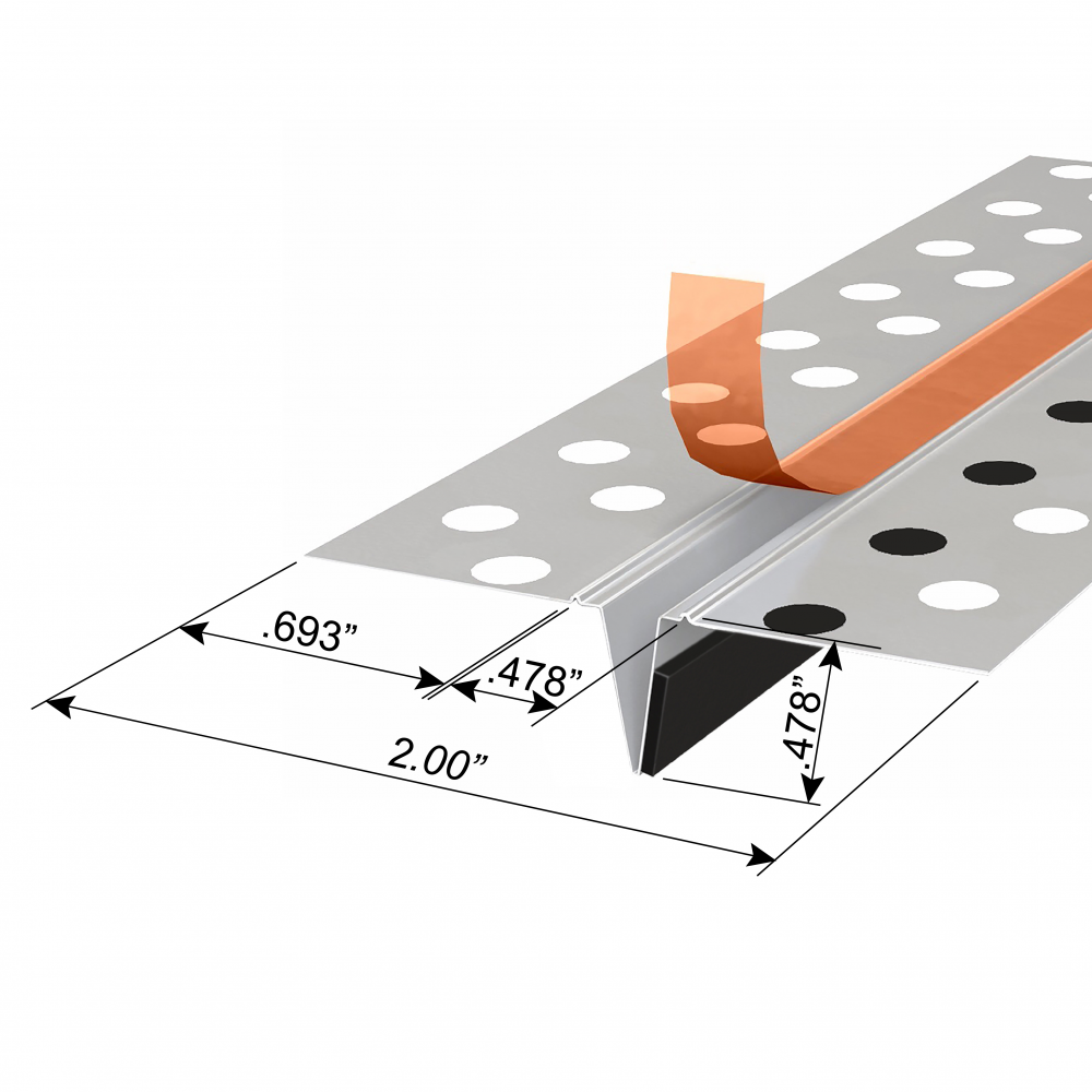 Fire Rated Control Joint is a composite control joint with intumescent tape factory applied to the back side of the control joint.