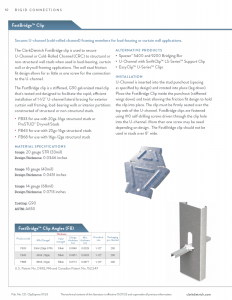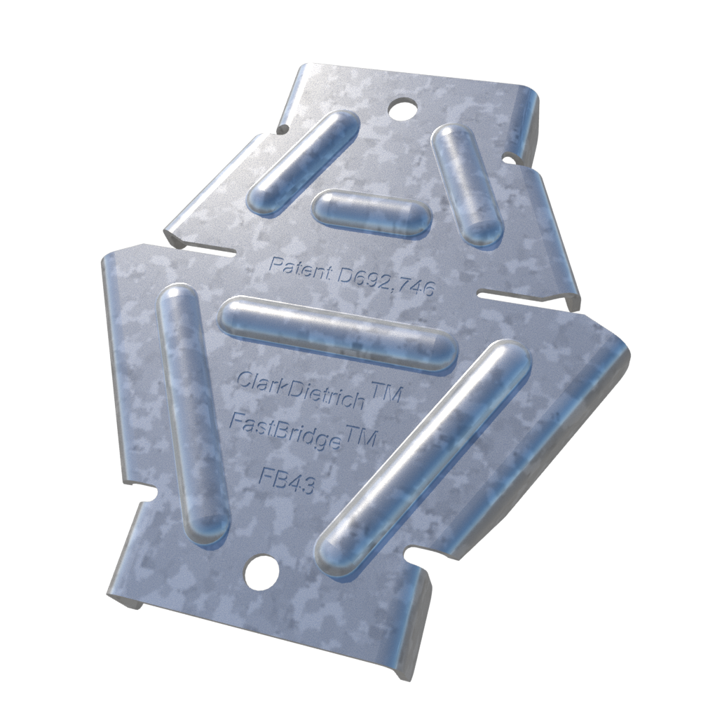 The ClarkDietrich FastBridge™ clip is used to secure U-Channel or Cold Rolled Channel (CRC) to structural or non-structural wall studs when used in load-bearing, curtain wall or drywall framing applications.