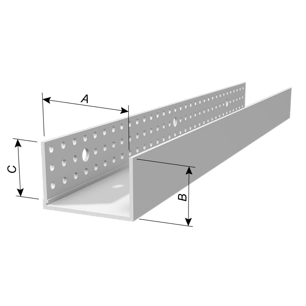 | Product code | Finish thickness | Insulation thickness (A) | Solid flange (B) | Perforated flange (C) | Pcs./Box |