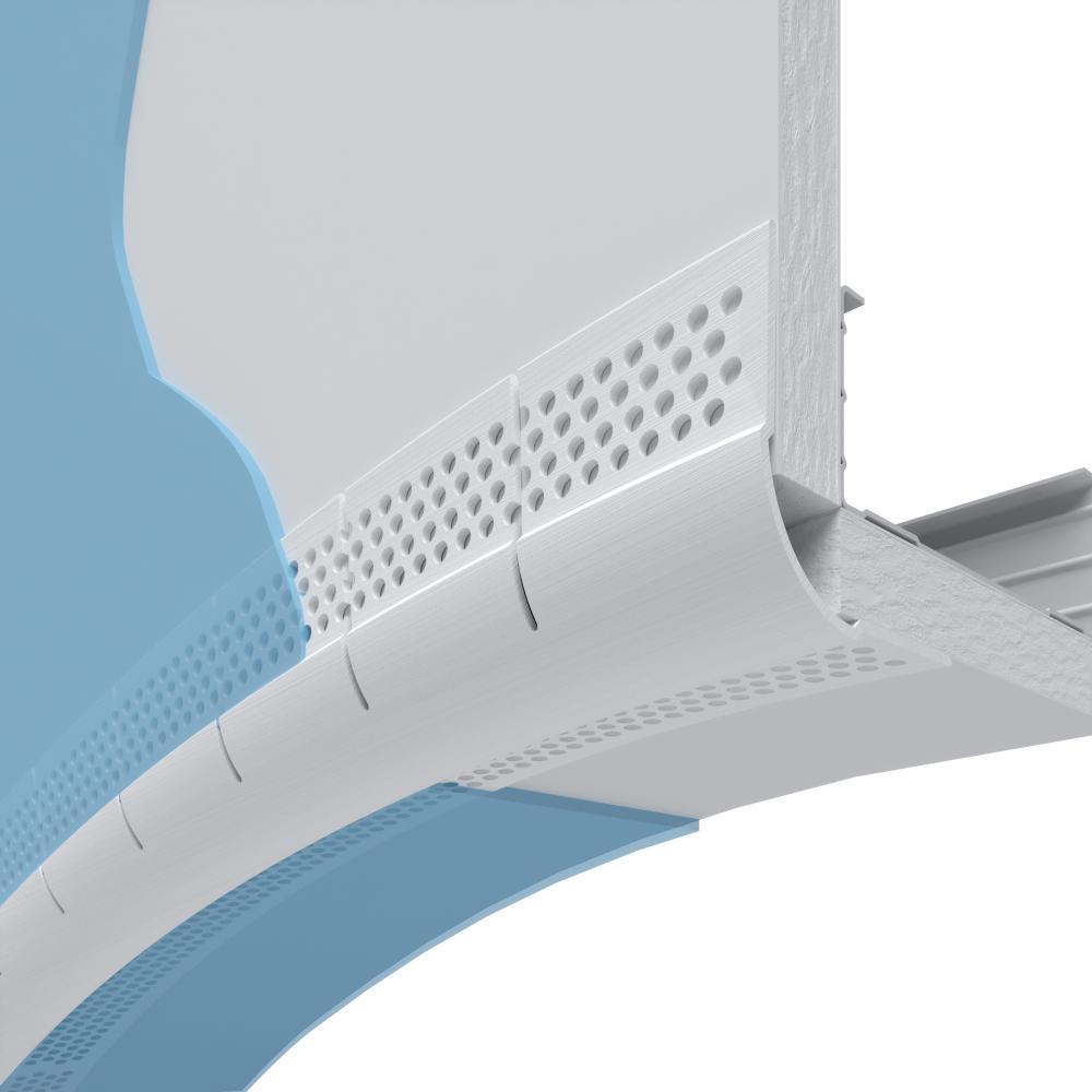 3/4" radius bullnose corner bead (VBAB) designed with slotted flange that easily forms to curves and arches with a soft, rounded finish.
