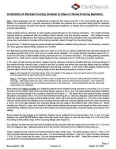 Resilient channel should be installed perpendicular to the framing members with the attachment flange of the RC Deluxe installed along the bottom edge. Channel is pre-punched for screw attachments to wood or steel framing members. Nails are not recommended for attaching RC Deluxe resilient channel to framing members. No more than 7.5 lbs/sf of gypsum panels should be installed to resilient furring channel for wall or ceiling applications. For reference, common 5/8” thick gypsum panels weigh upwards of 2.5 lbs/sf.