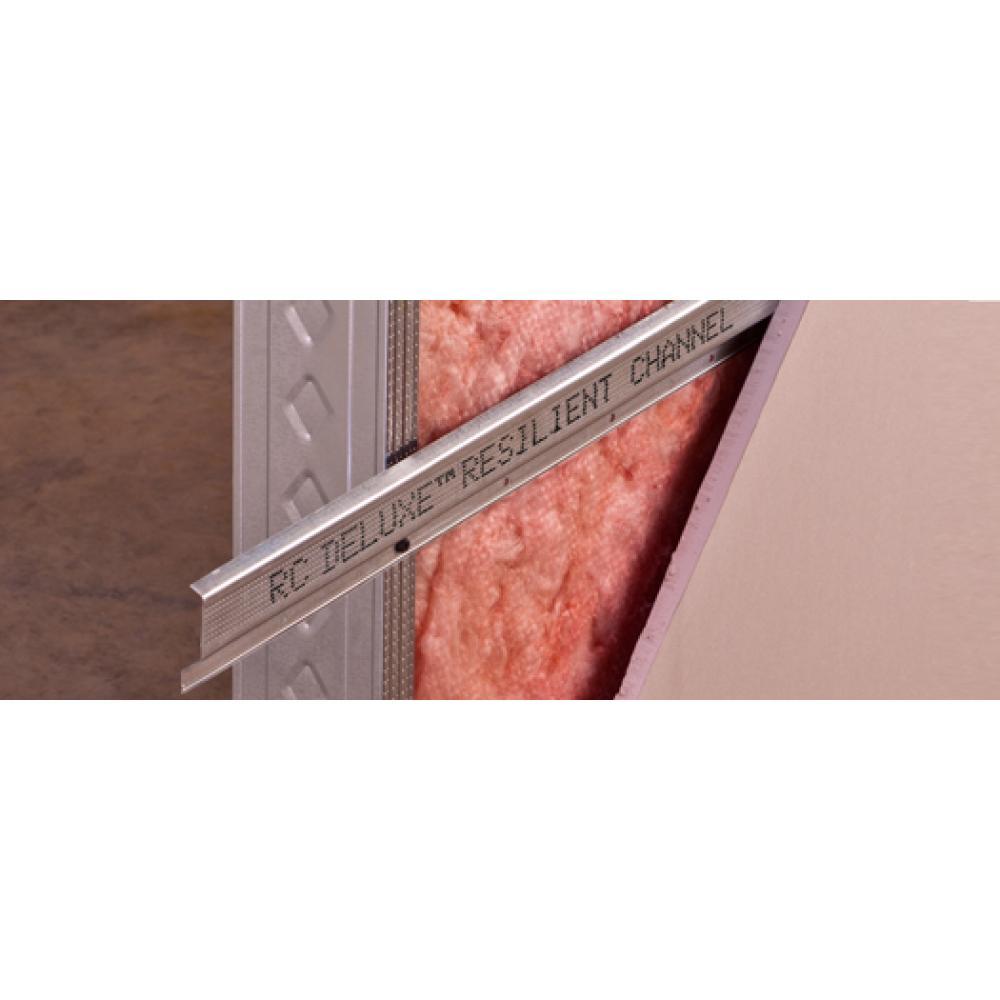 Made of 22mil steel, RC Deluxe is one of the most effective, low-cost methods of improving sound transmission loss through wood and steel frame partitions. RC Deluxe is the preferred resilient channel because of its extra-wide 1-1/2” flange for the installation of the gypsum board. Ink jetted to assist in proper installation orientation.