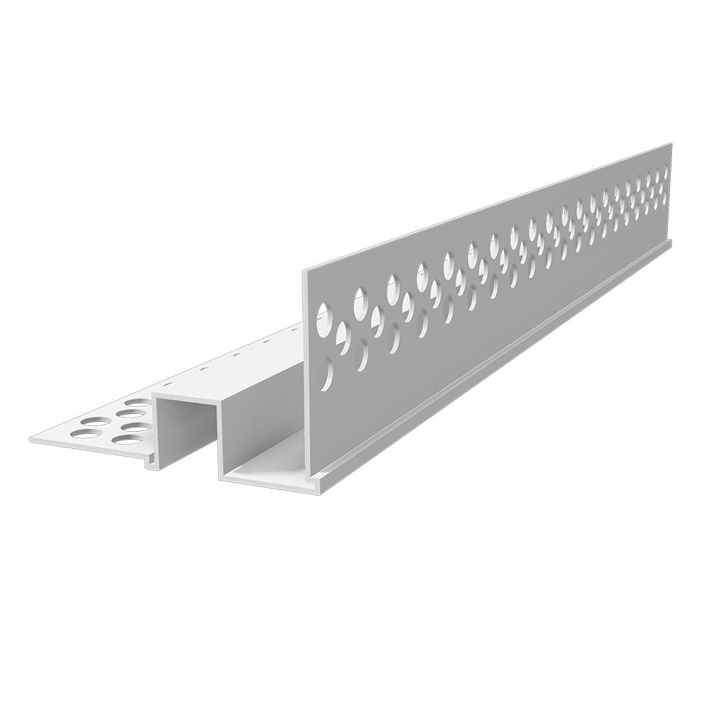 Used to direct moisutre away from the installation in EIFS and DEFS installations. Always use a rigid backing or blocking material behind surface mounted reveal.