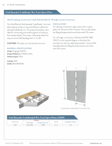 For splicing connections, align center slots in splice plate over the joint of the rim joists. Secure splice plate by filling all prepunched screw holes with #10 screws. For off-angle connections, field bend (ONE TIME ONLY) to the required degree so the plate fits securely over the two adjoining members. Secure field skewable plate by filling all prepunched screw hole with #10 screws.