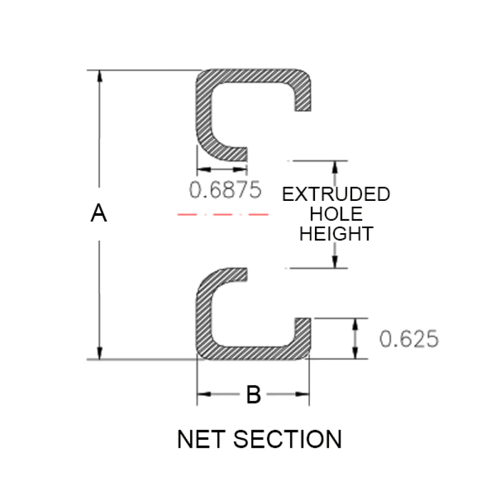 | Extruded Hole Width | 7" | 7" | 9" | 9" | 9" | ||