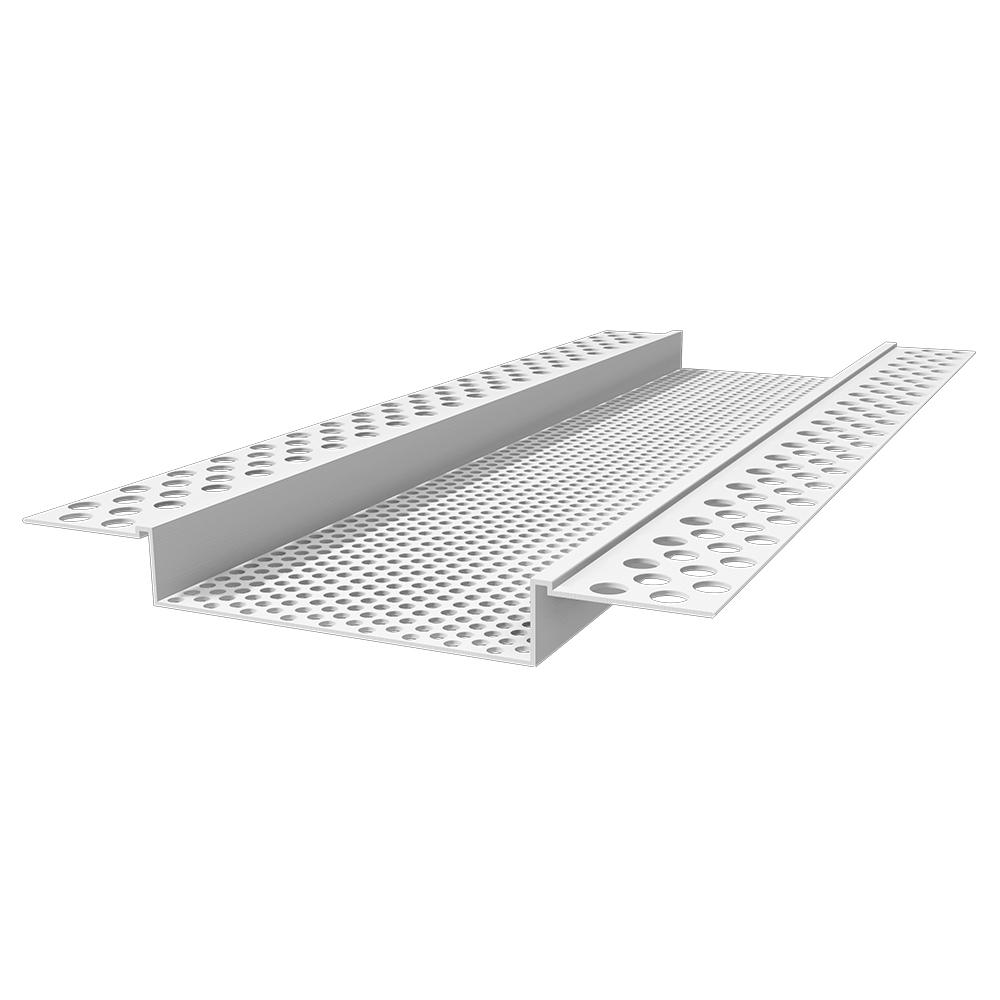 Vented channel reveals facilitate perimeter air flow to assist in moisture management and temperature control. This vent is intended for surface-mount applications. Always use a rigid backing or blocking material behind surface-mounted reveal. Perforated flanges allow the base coat mixture to easily flow through and bond with the substrate. Vent clips are provided with vented channel reveals to connect reveal sections and assist in alignment.